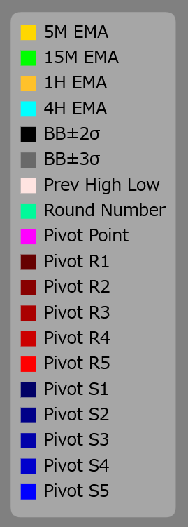 Pivot lines (S1-S5 / R1-R5) and Round Number only appear on the chart when the price is reached.